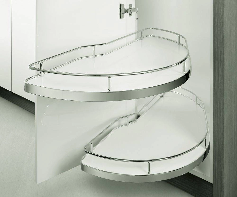 - Montaż do szafki narożnej: Zaprojektowany do wygodnego montażu w szafkach narożnych z frontami na zawiasach równoległych, co pozwala na maksymalne wykorzystanie dostępnego miejsca.