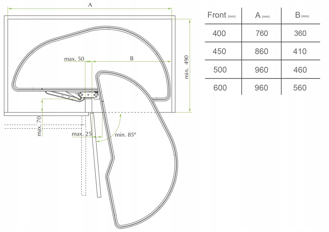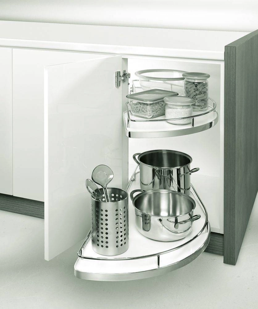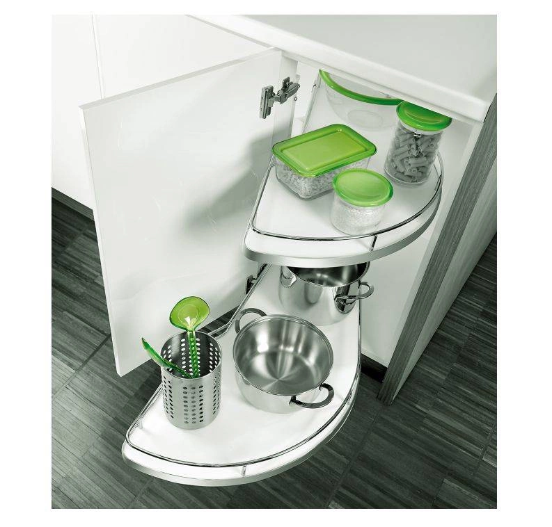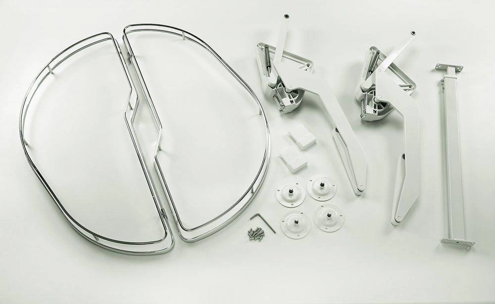 - Montaż do szafki narożnej: Zaprojektowany do wygodnego montażu w szafkach narożnych z frontami na zawiasach równoległych, co pozwala na maksymalne wykorzystanie dostępnego miejsca.