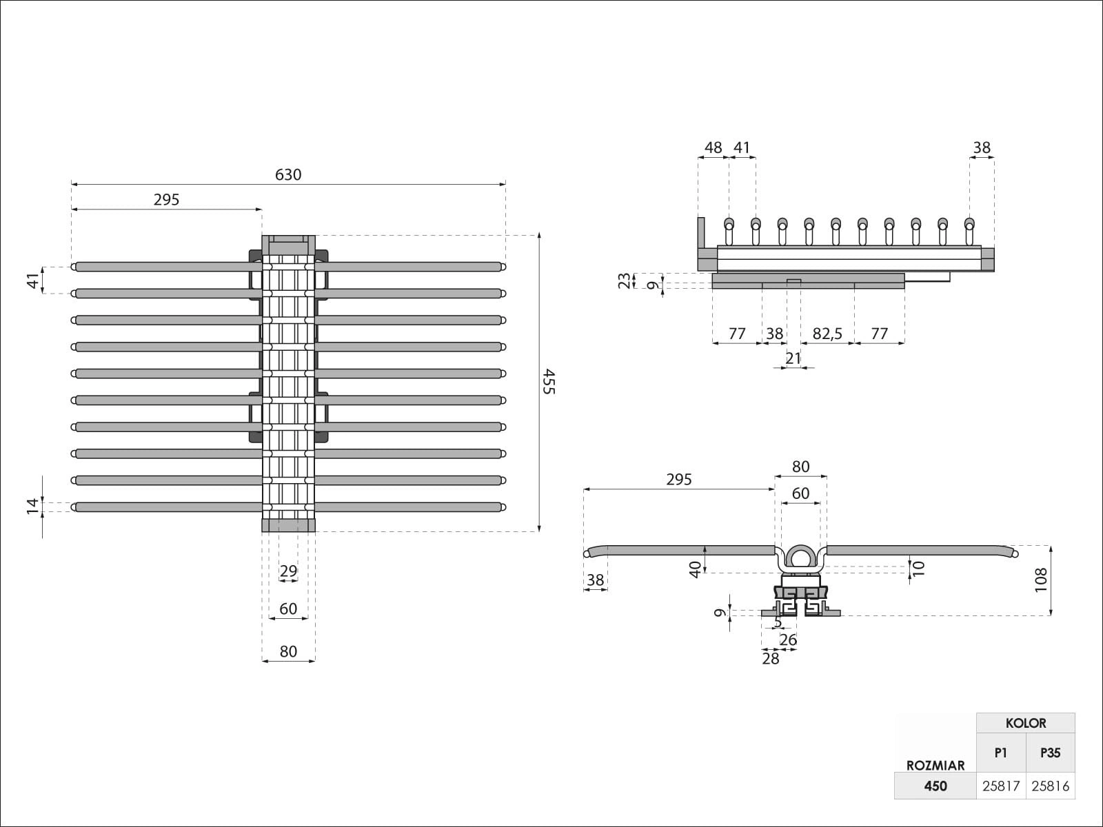 - Ergonomiczny uchwyt – okrągły uchwyt na przodzie ułatwia wysuwanie wieszaka.