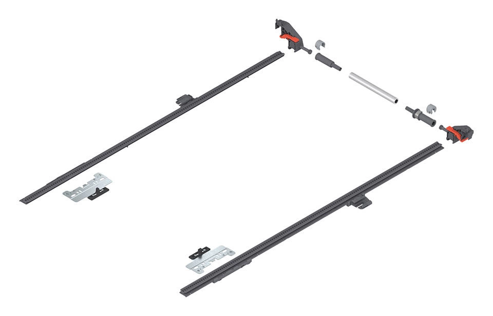 MERIVOBOX Stabilizacja boczna, dł.=650 mm, KB=1400 mm, pełen wysuw