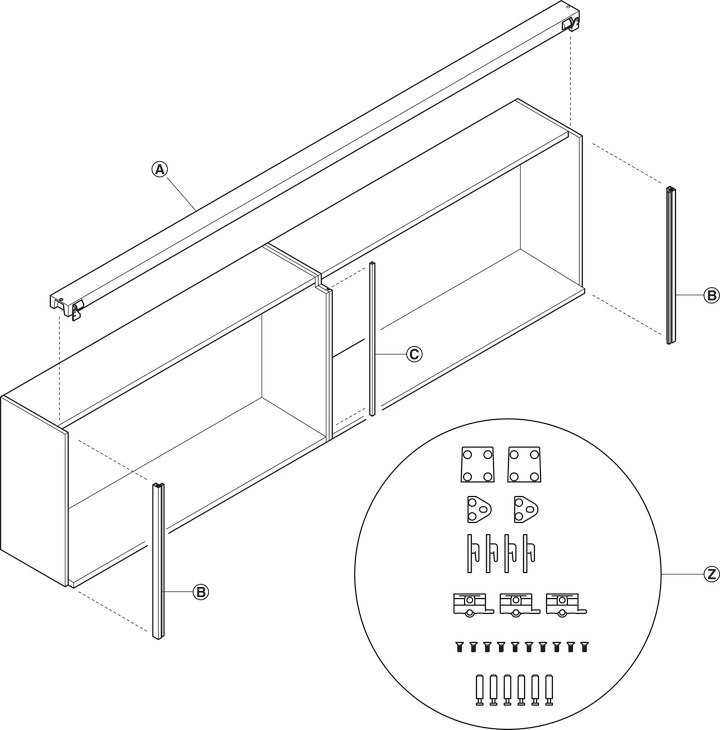 Zestaw: komplet z szynami - do szafek kuchennych. Ruch pionowy do góry z pozycji "startowej"