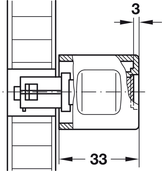 - Gałka obrotowa, Hafele Symo, długość 33 mm do połączenia z wkładką wymienną Symo, bez pierścieni, lewa