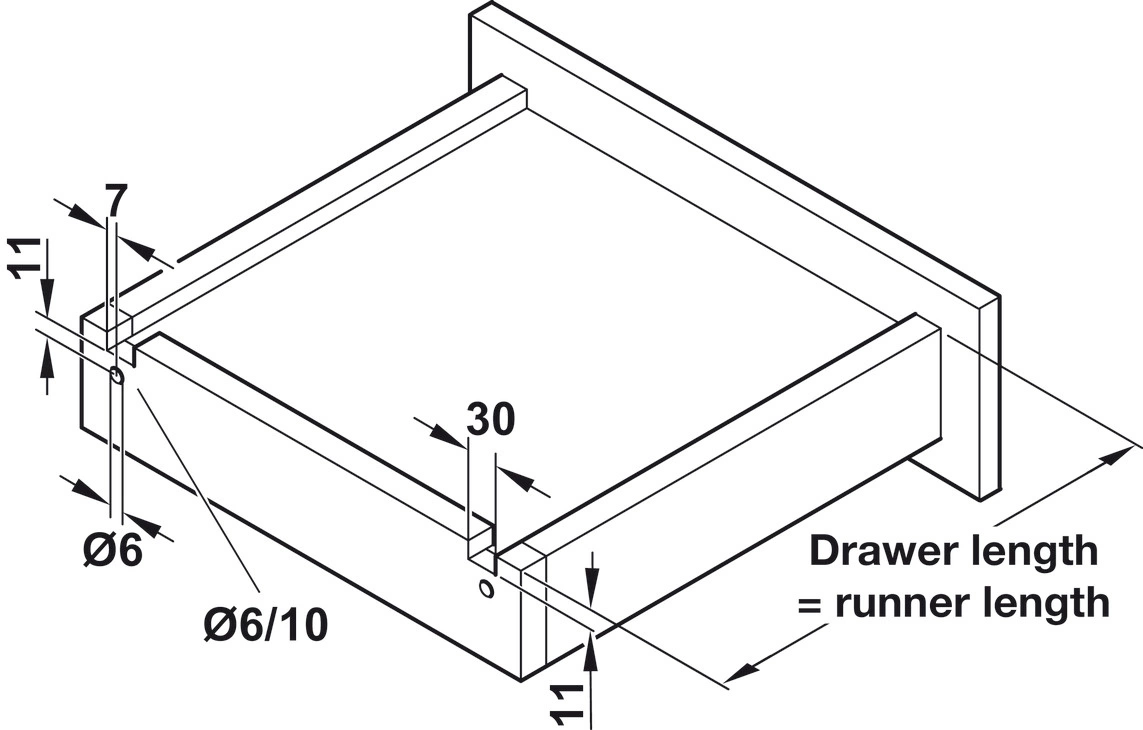 Prowadnica Favorit A30 firmy Hafele znajdzie swoje uniwersalne zastosowanie do szuflad z frontem wpuszczanym jak i nakładanym. Wykorzystuje technologię montażu nasuwanego ze sprzęgłem. Dolny montaż charakteryzuje się ukrytym mocowaniem do dna szuflady, pozwalając na zachowanie wysokiej estetyki. Funkcja pełnego wysuwu umożliwia wygodny dostęp do pełnej zawartości szuflady, a cichy domyk zwiększa komfort użytkowania. Prowadnica została wyposażona w regulację 3D (pionową, poziomą oraz dodatkowo głębokości), która odbywa się bez użycia narzędzi, co ułatwia i przyspiesza proces montażu. Dodatkowo posiada amortyzację w końcowej fazie otwierania oraz wbudowaną synchronizację zamykanie jak i otwierania. Wytrzymuje obciążenie do 30 kg oraz może być zastosowana do szuflad o ścianach bocznych wykonanych z materiału o grubości 18 mm. Prowadnice posiadają możliwość łatwego demontażu szuflady oraz mechanizm zabezpieczający przed jej wypadnięciem