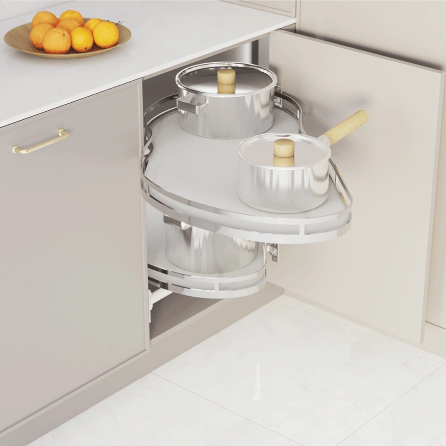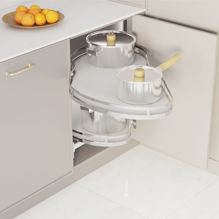 Montaż do Szafki Narożnej: Idealne rozwiązanie do szafek narożnych z frontem na zawiasach standardowych lub równoległych, maksymalizujące wykorzystanie przestrzeni.