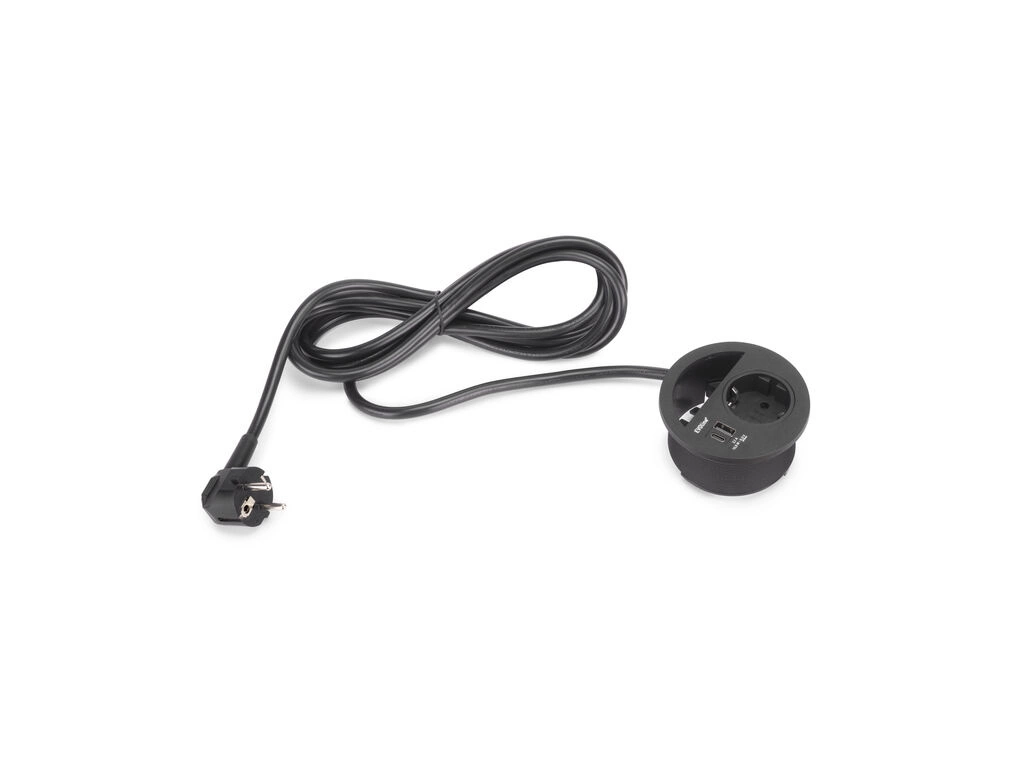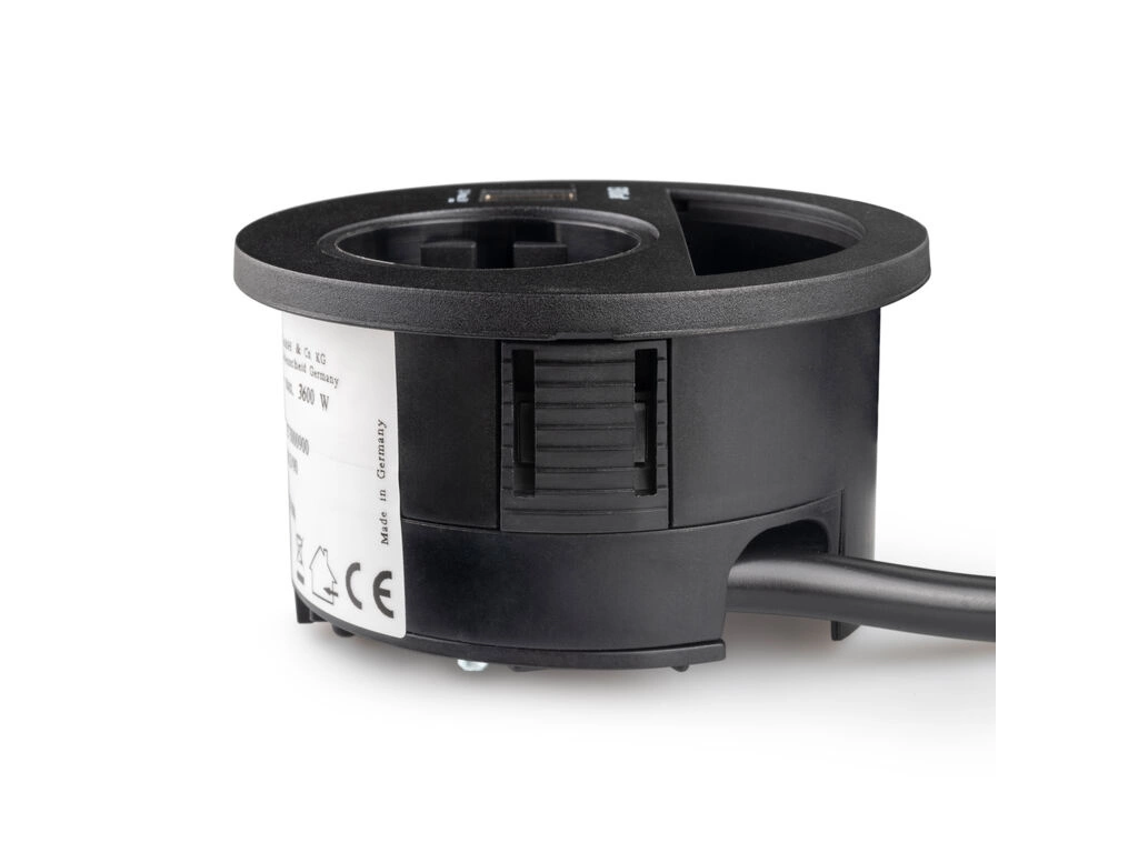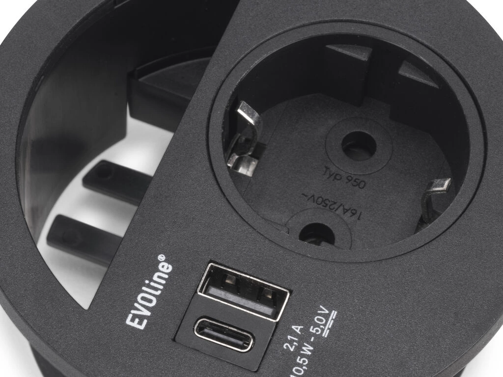 - EVOline - Listwa zasilająca Circle 80, średnica 80 mm, 1 gniazdo Schuko, 1 USB typu A, 1 USB typu C, Plastik, Malowana na czarno