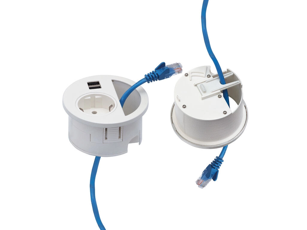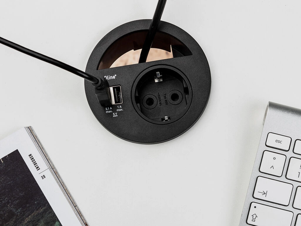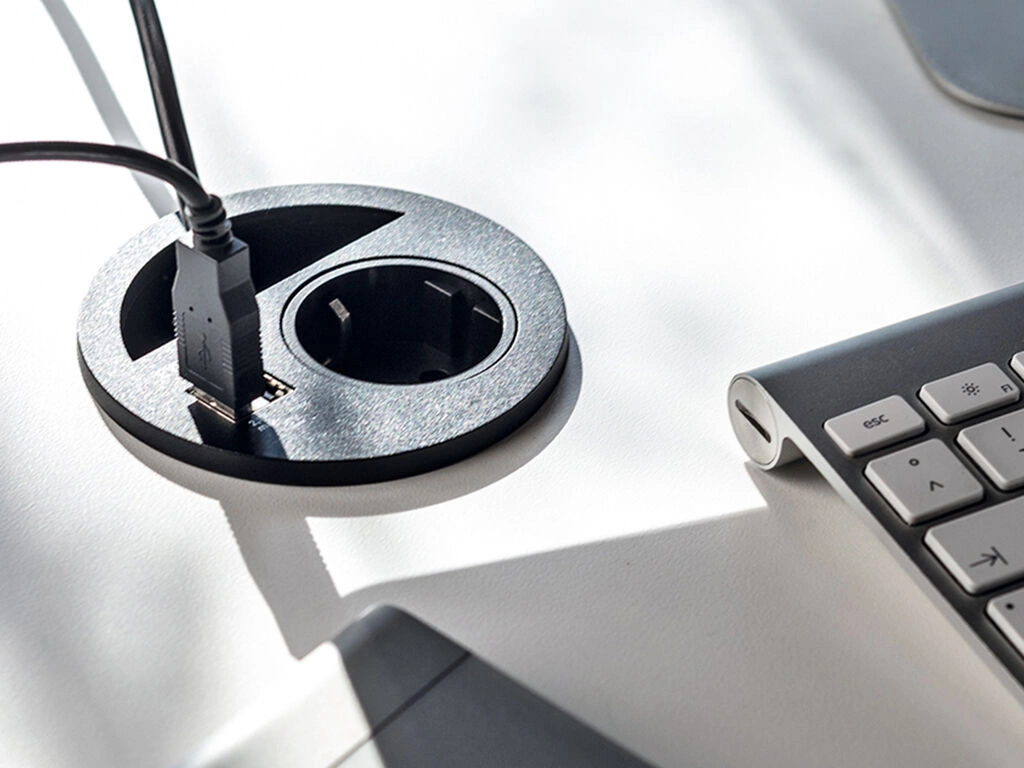 Circle 80 to kompletne rozwiązanie typu plug & play, które łączy gniazda zasilające i porty ładowania w jednym, estetycznym elemencie. Sprawdzi się zarówno w projektach seryjnych, jak i indywidualnych realizacjach meblowych.