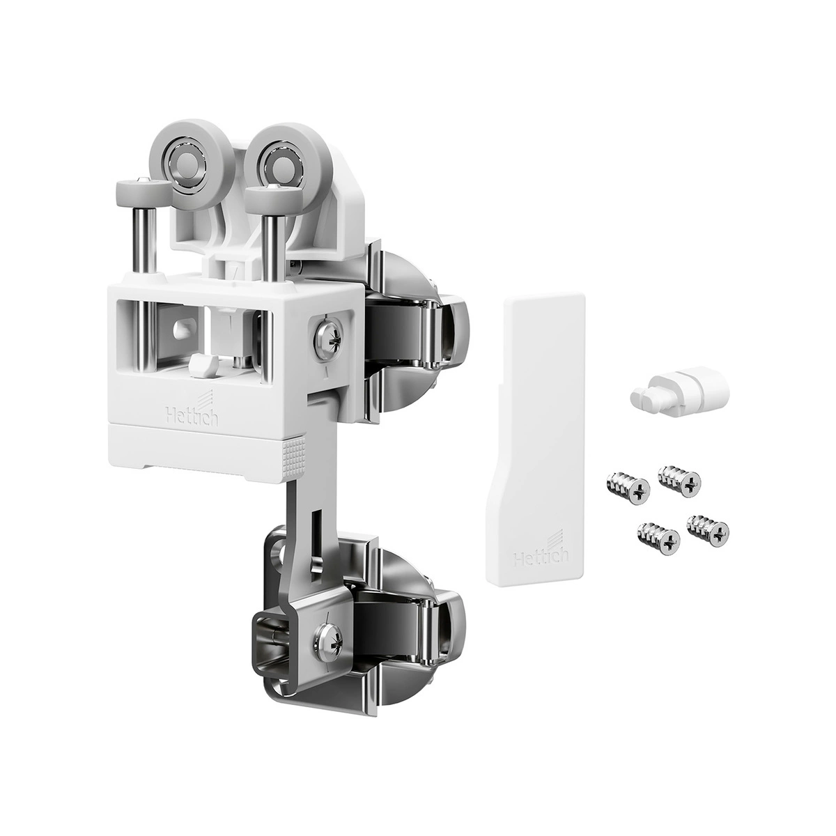 Modułowy komplet montażowy do dwuskrzydłowych drzwi składanych WingLine L w lekkiej klasie obciążenia. Brak prowadzenia dolnego upraszcza projekt i zapewnia całkowicie wolną podłogę korpusu. Zestaw oferowany w dwóch wersjach funkcjonalnych (z automatyką domykania lub przygotowany pod jednostkę komfortu Push-/-Pull-to-Move) oraz trzech kolorach wykończenia.