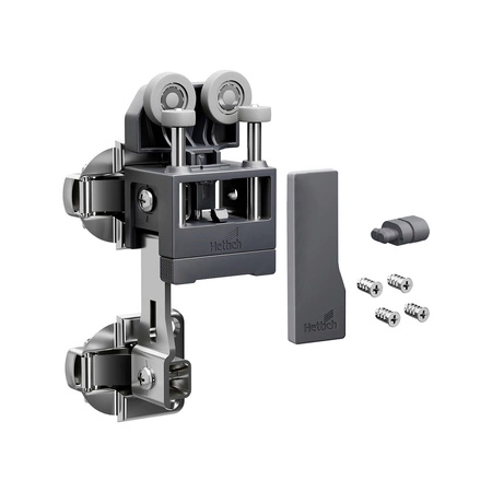 Modułowy komplet montażowy do dwuskrzydłowych drzwi składanych WingLine L w lekkiej klasie obciążenia. Brak prowadzenia dolnego upraszcza projekt i zapewnia całkowicie wolną podłogę korpusu. Zestaw oferowany w dwóch wersjach funkcjonalnych (z automatyką domykania lub przygotowany pod jednostkę komfortu Push-/-Pull-to-Move) oraz trzech kolorach wykończenia.