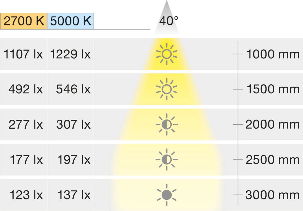 Temperatura barwowa: 2700–5000 K (ciepła/zimna biel)