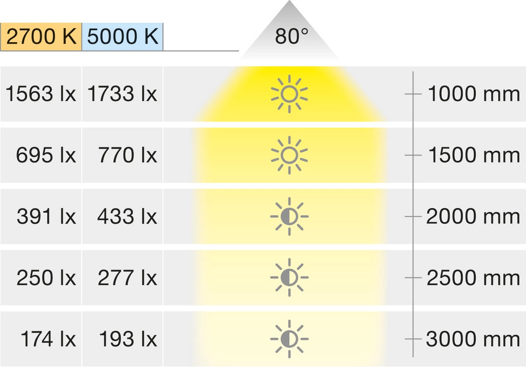 Kąt świecenia: 80°