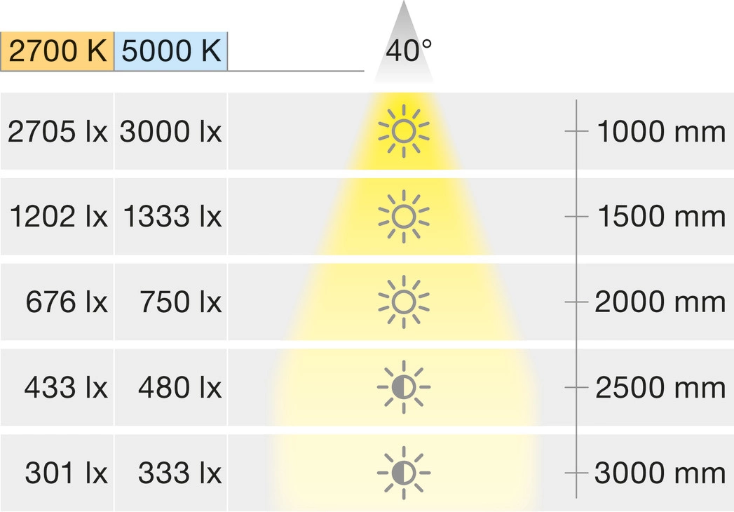 Temperatura barwowa: 2700–5000 K (ciepła/zimna biel)