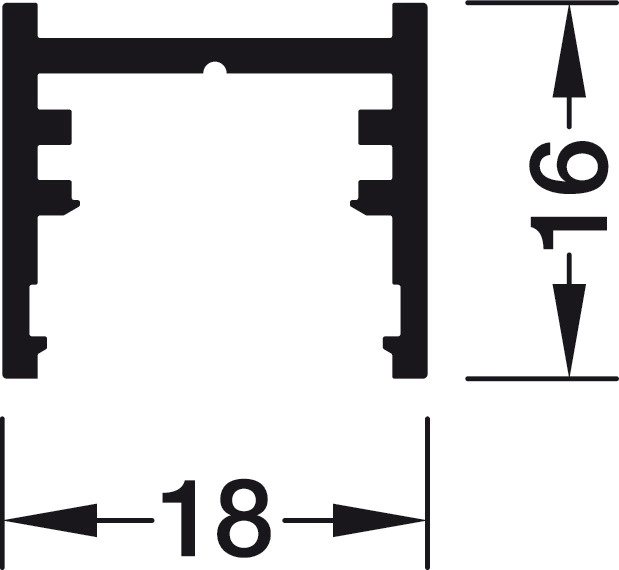 - długość: 2500 mm, szerokość: 18 mm, wysokość: 16 mm, materiał: aluminium, profil nawiercony, malowany proszkowo, kolor: biały