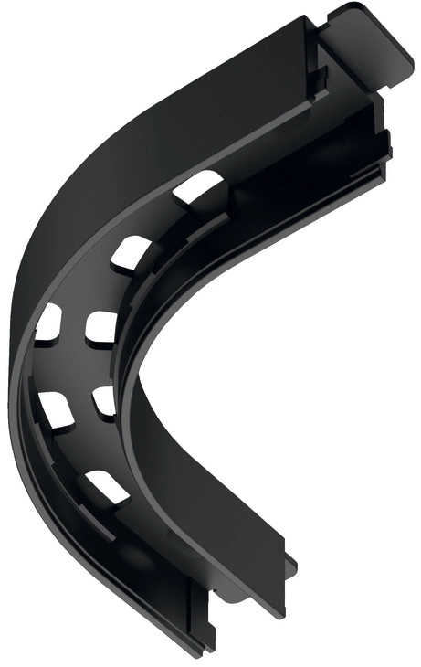 Łącznik narożny do systemu OneCable, przeznaczony do łączenia dwóch profili w jednej płaszczyźnie – np. na tej samej ścianie lub suficie. Umożliwia estetyczne prowadzenie przewodu po łamanej linii.