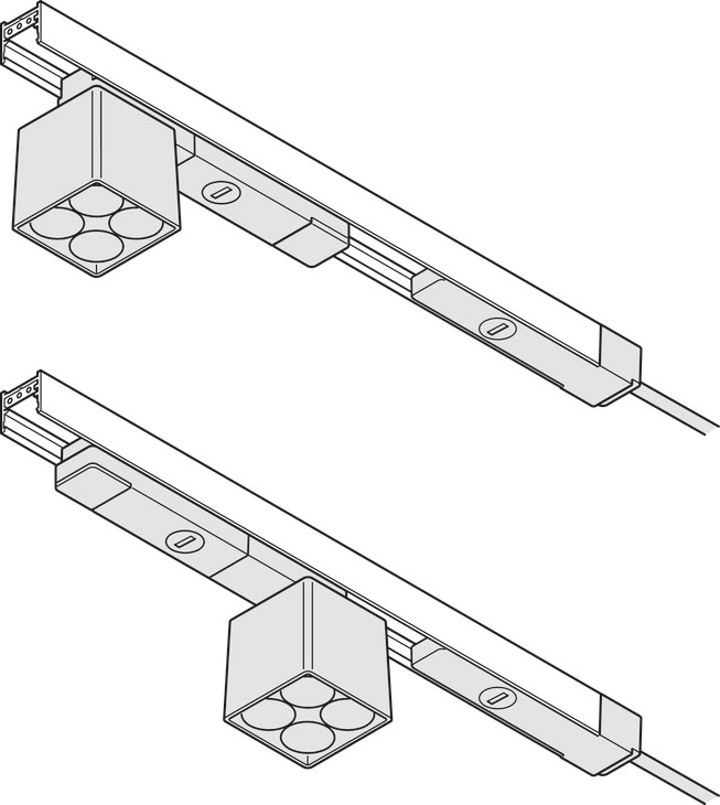 Moduł zasilający do systemu OneCable, przeznaczony do podłączenia płaskiego przewodu zasilającego w profilu aluminiowym. Obsługuje łączne obciążenie do 240 W (2 × 120 W).