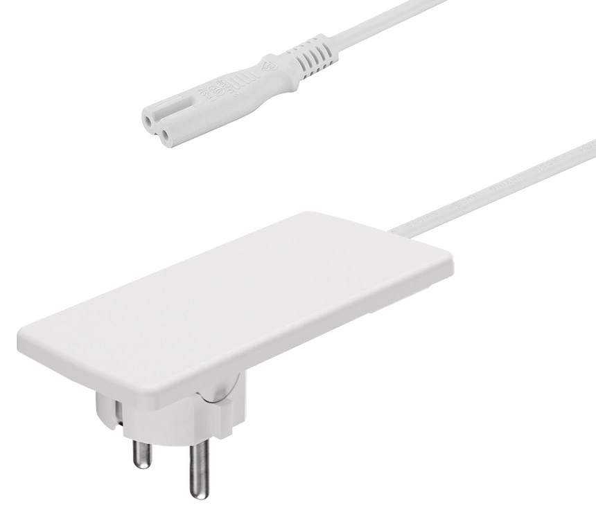 - Przewód do zasilacza, Häfele Lighting OneCable przewód 2-żyłowy z wtyczką C7, przeznaczony do zasilaczy do 90 W, wtyczka wymaga gniazda Schuko, długość przewodu: 500 mm, kolor: biały