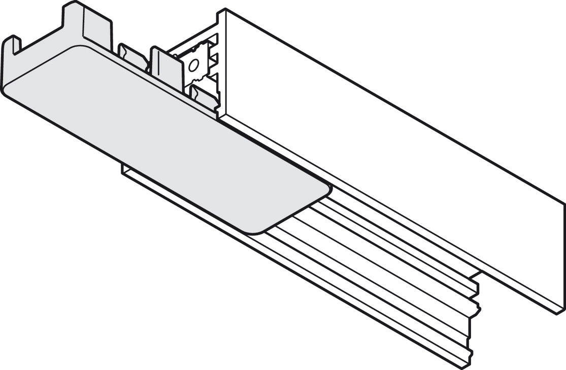 Łącznik wyrównujący do systemu oświetleniowego Häfele OneCable. Stosowany jako pomoc montażowa do łączenia dwóch profili aluminiowych, stabilizacja przewodu płaskiego lub zabezpieczenie opraw montowanych pionowo (np. na ścianie).