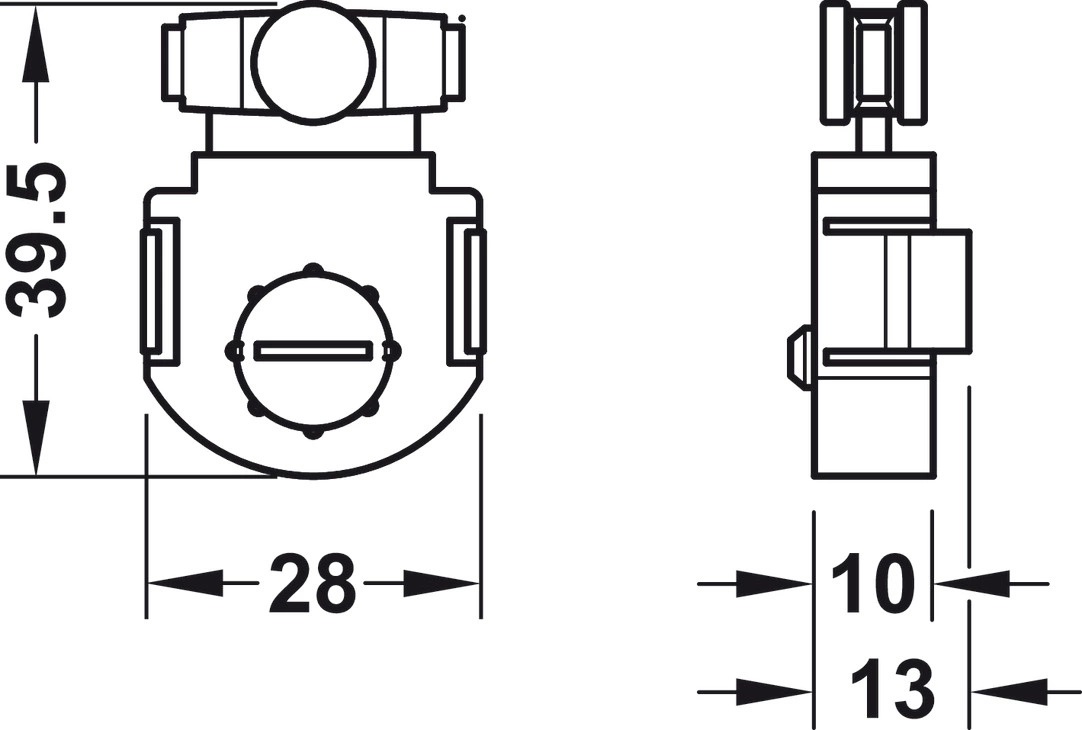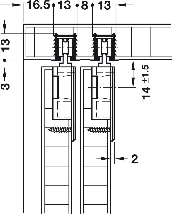 - zespół jezdny, do mocowania na wcisk, regulacja wysokości ±1,5 mm, Hafele Slido F-Line11 12A, Infront