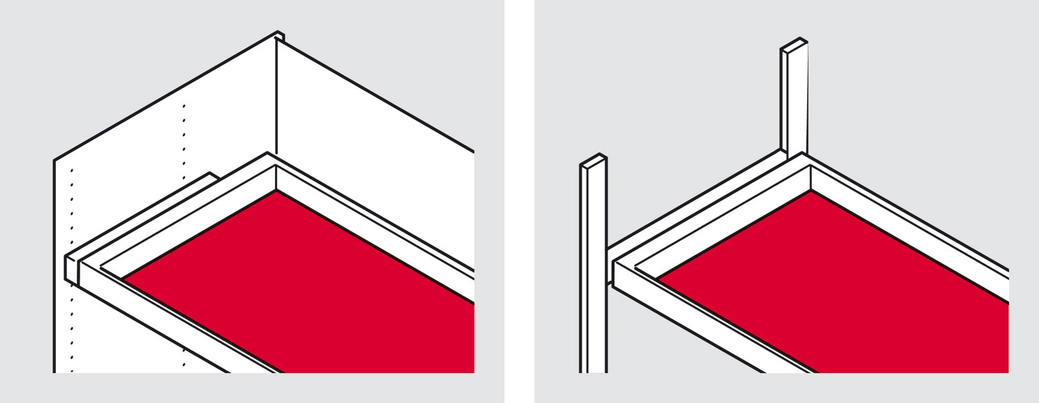 Element umożliwiający przekształcenie ramy wysuwanej Hafele Dresscode w pełnowartościową szufladę. Dzięki otworom montażowym z jednej strony, możliwe jest zamocowanie ramy zewnętrznej (np. z frontem wewnętrznym).