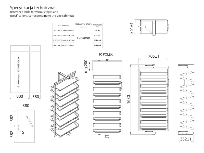 WB-671 x10 P35 Kosz na buty obrotowy (10 półek)