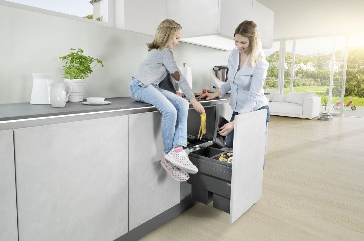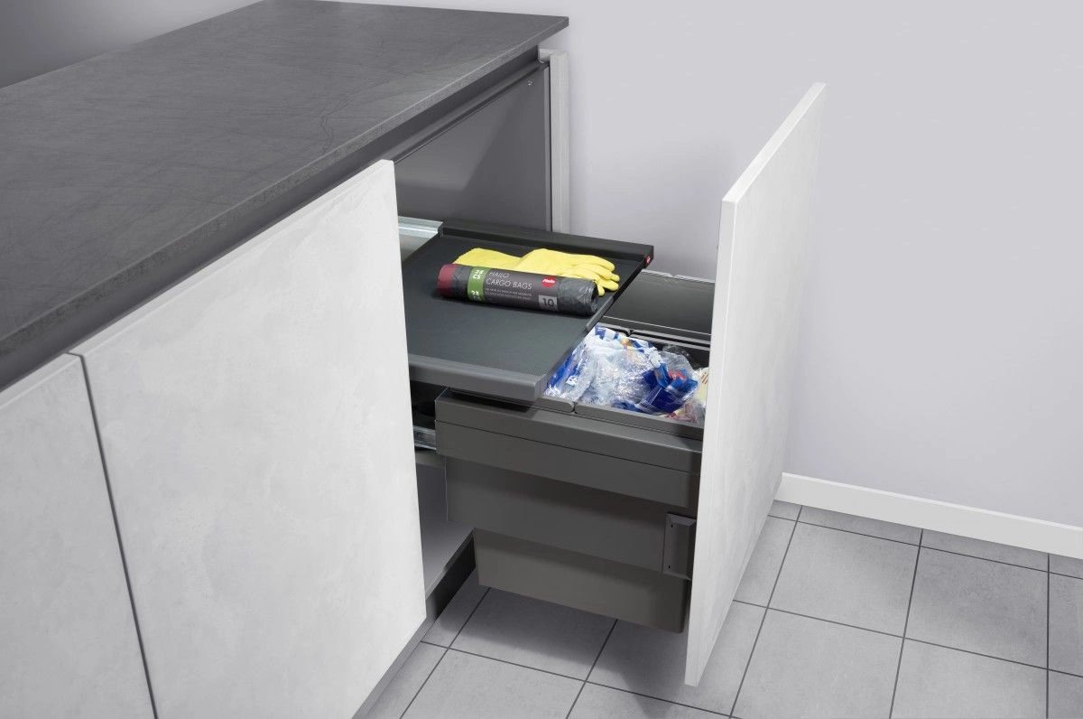 System wysuwa się całkowicie, dzięki czemu dostęp do obu koszy jest łatwy – bez potrzeby schylania się czy wyciągania jednego przed drugim.Idealny do sortowania odpadów