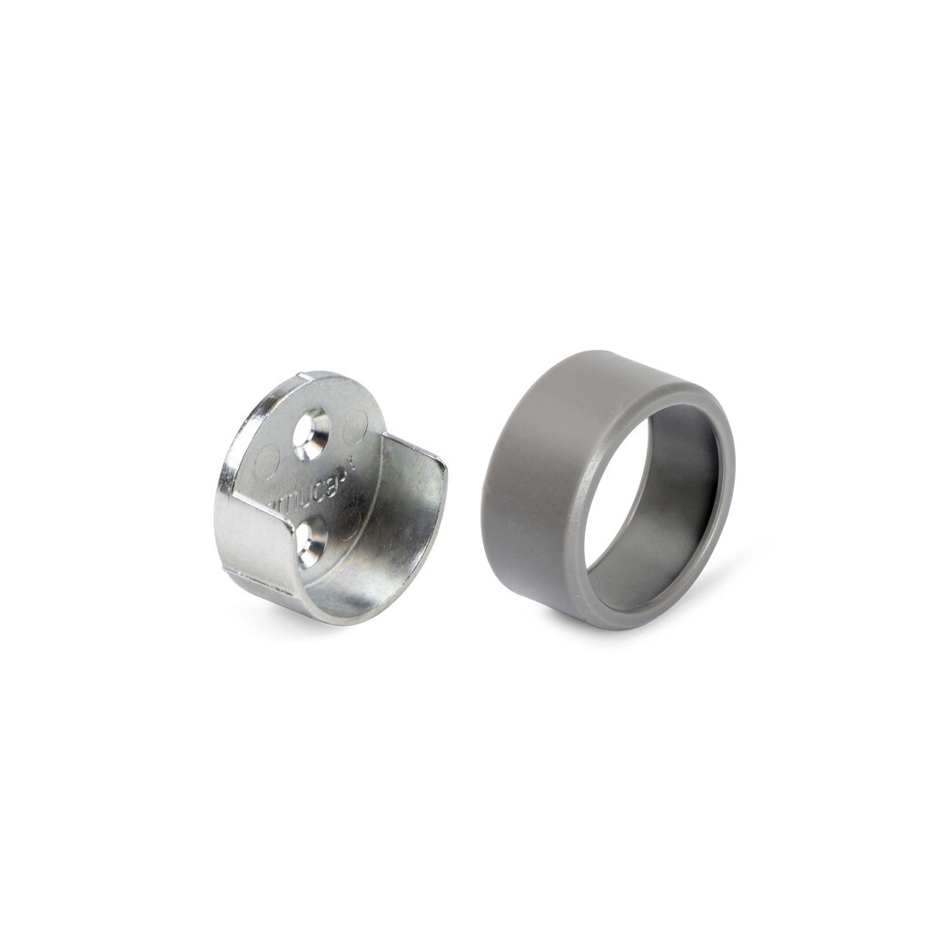 Boczny wspornik zaprojektowany do montażu drążków ubraniowych o średnicy 28 mm w szafach i garderobach. Montowany do boku mebla za pomocą śrub; plastikowy element mocowany na docisk zapewnia stabilność i zapobiega luzom. Wspornik wykonany ze stopu Znal i tworzywa sztucznego, dostępny w wykończeniu czarnym, anodowanym mat lub tytanowym.