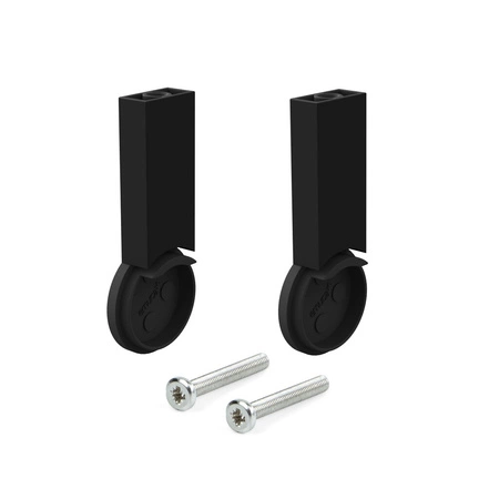 Wsporniki wykonane są ze stopu Znal, a dostępne wykończenia (czarny, anodowany mat, tytanowy) pozwalają dopasować je do koloru drążków i wnętrza mebla. W zestawie znajdują się śruby M5 × 38 mm do montażu.