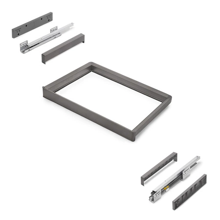 - Rama z cichym domykiem i prowadnicami z pełnym wysuwem do akcesoriów meblowych Quartz, 662-688mm, Aluminium i plastik, Tytanowy