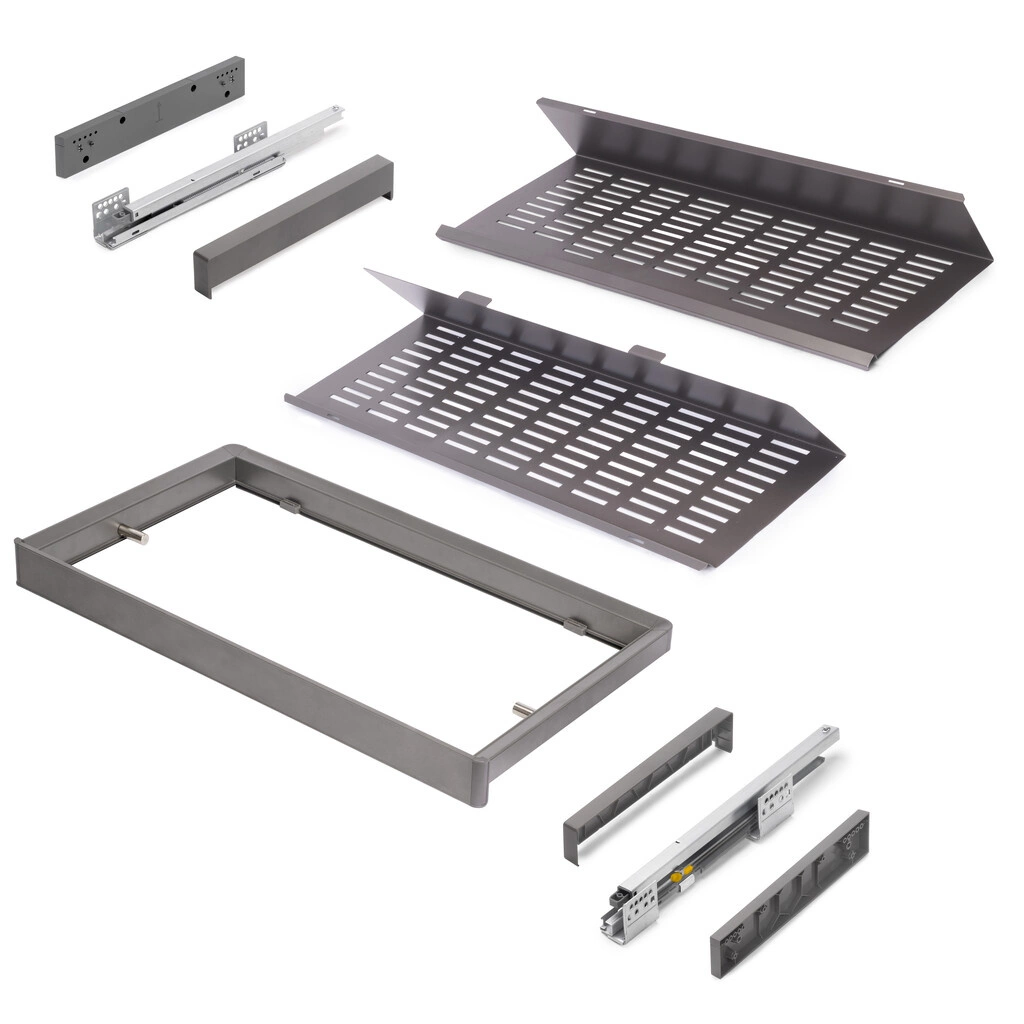 Zestaw wysuwanych szuflad na buty do szafy i garderoby Quartz – tytanowy