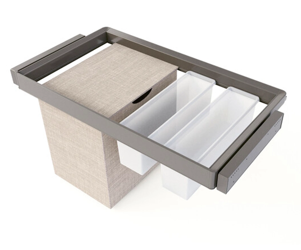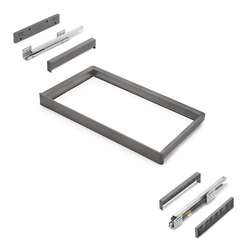 - Zestaw Quartz – rama z cichym domykiem, kosz tekstylny i 2× taca M90, tytanowy