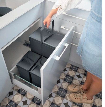 Elastyczna konfiguracja koszy tworzy go bardzo funkcjonalnym, gdzie łatwo utrzymamy czystość.